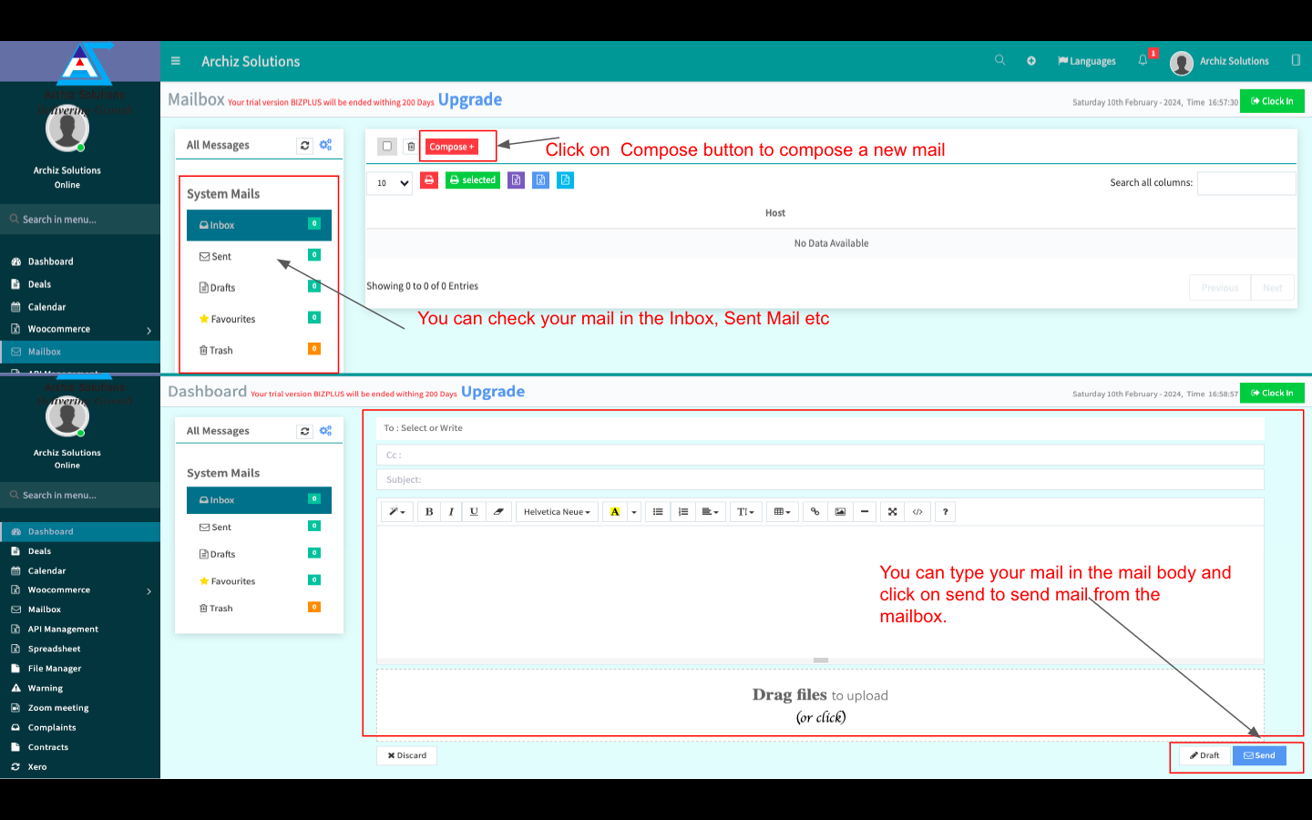 You Can Save the composed mail in the draft also by clicking on Save and Draft.