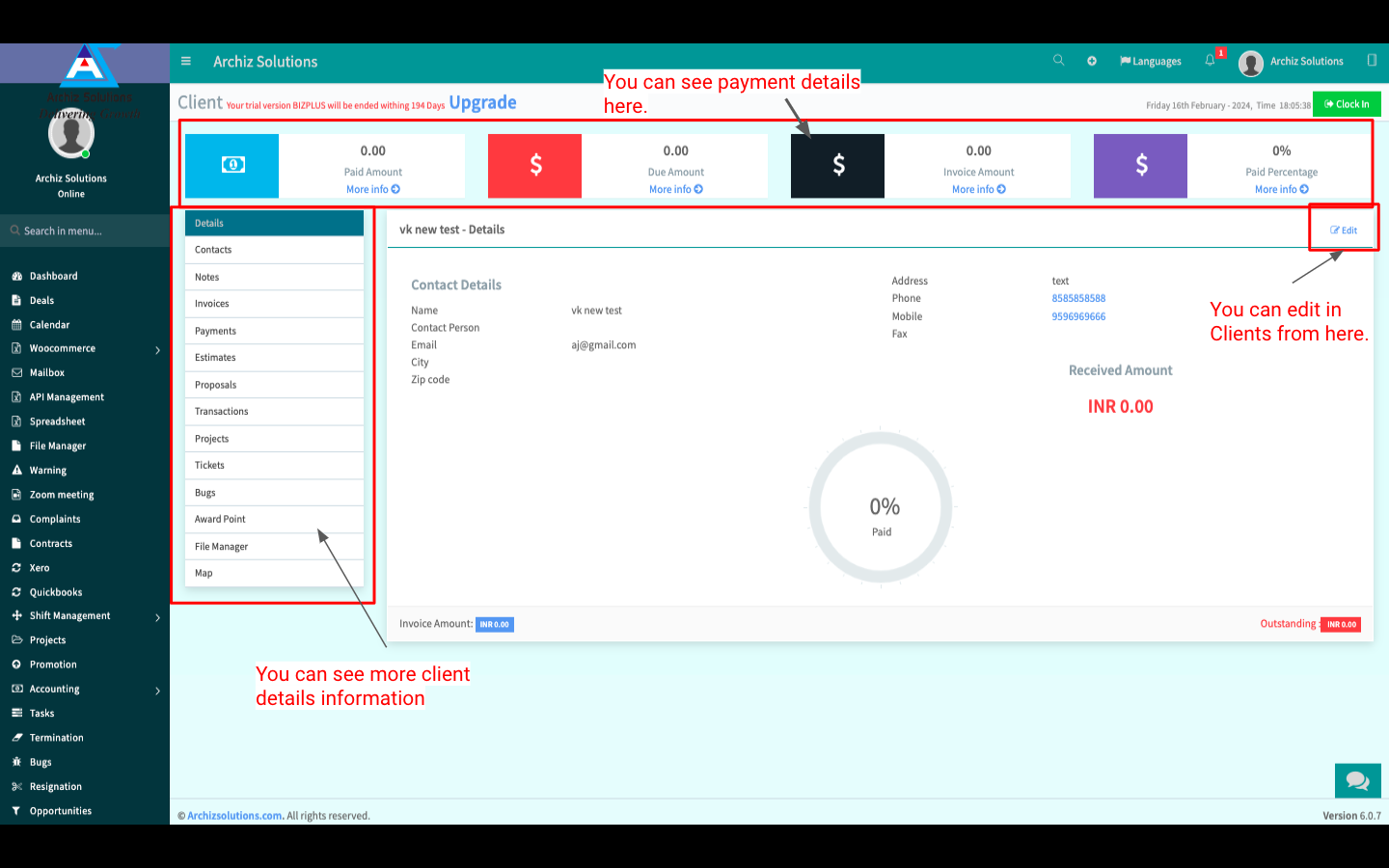 You can Preview Client Details by clicking on Client Name. You can also Modify an existing client