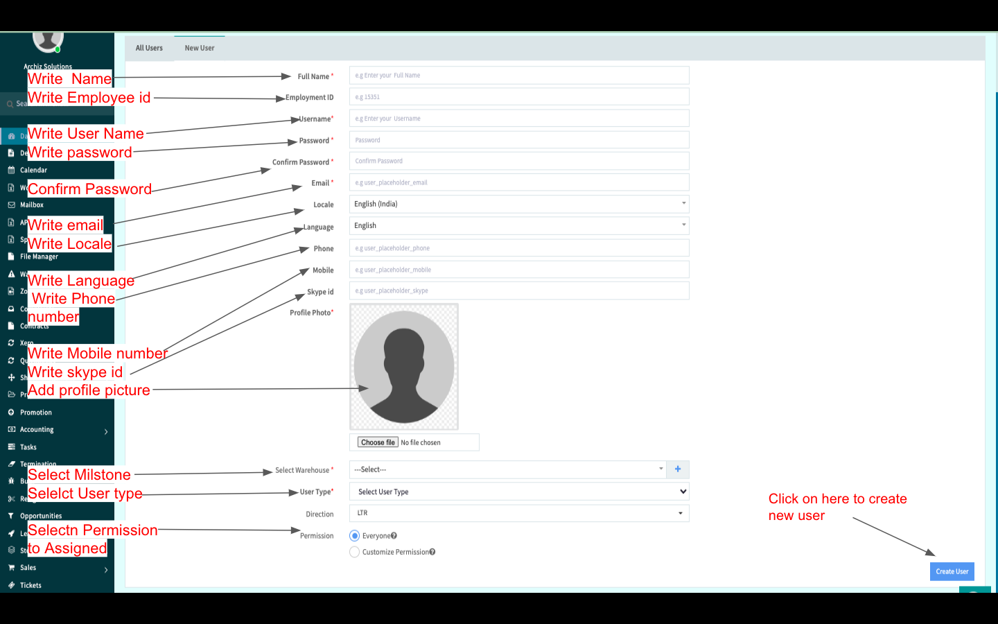 You can Create a New User by clicking “New User” beside “All Users”. Fill up all info and click “Save” to Create the New User.