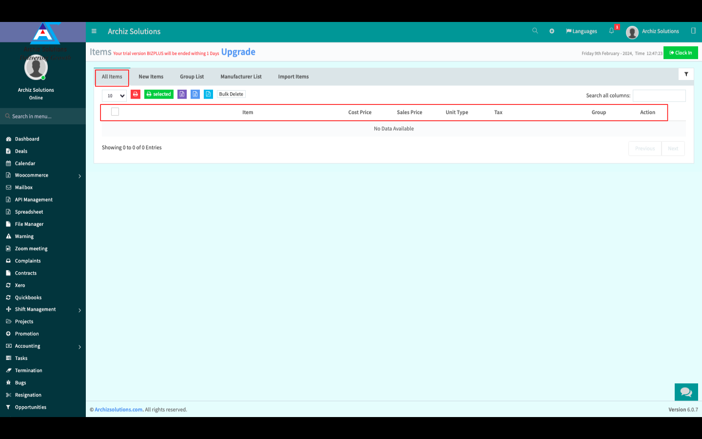 Click on Manage Transfer Items here all the Transfer item lists will be shown