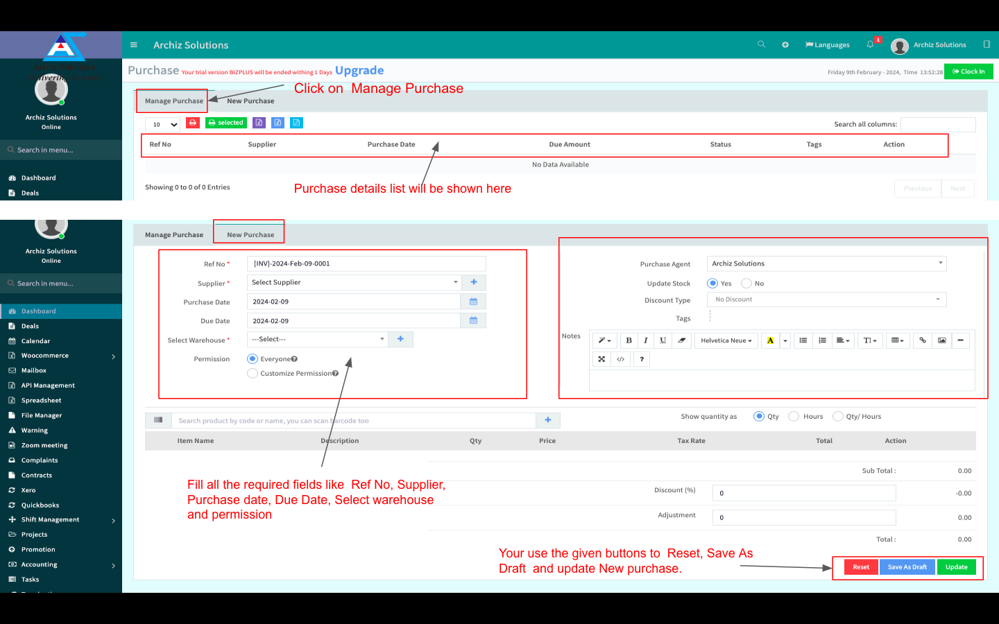You can use the given buttons to Reset, Save As Draft and update the Transfer Item.