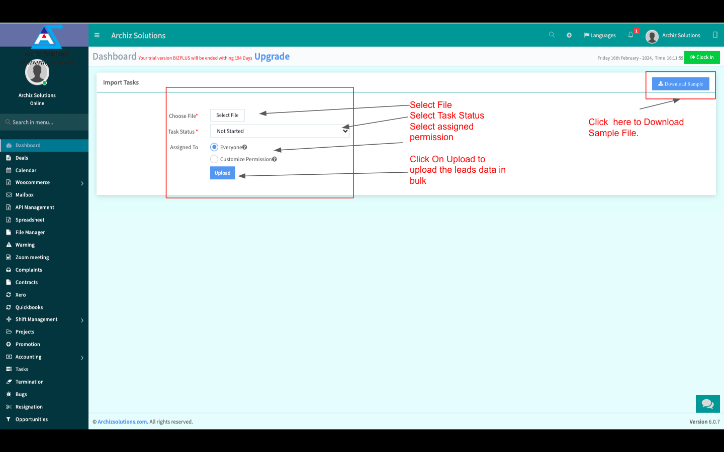 You can also upload an existing Task File from your Local Storage (XLSX, CSV File Only).
